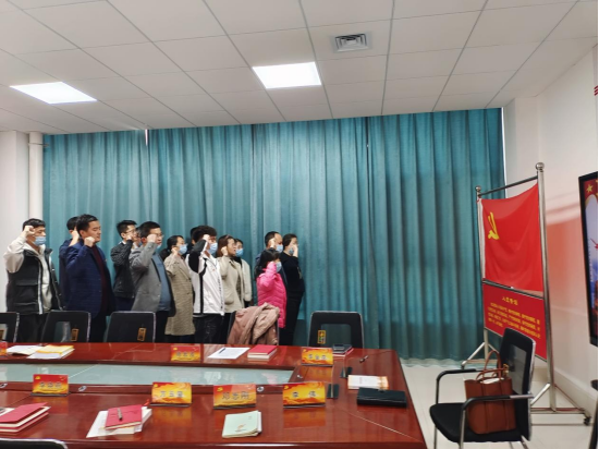 1、重温入党誓词。由安丰金书记带领全体党员面向党旗庄重宣誓。